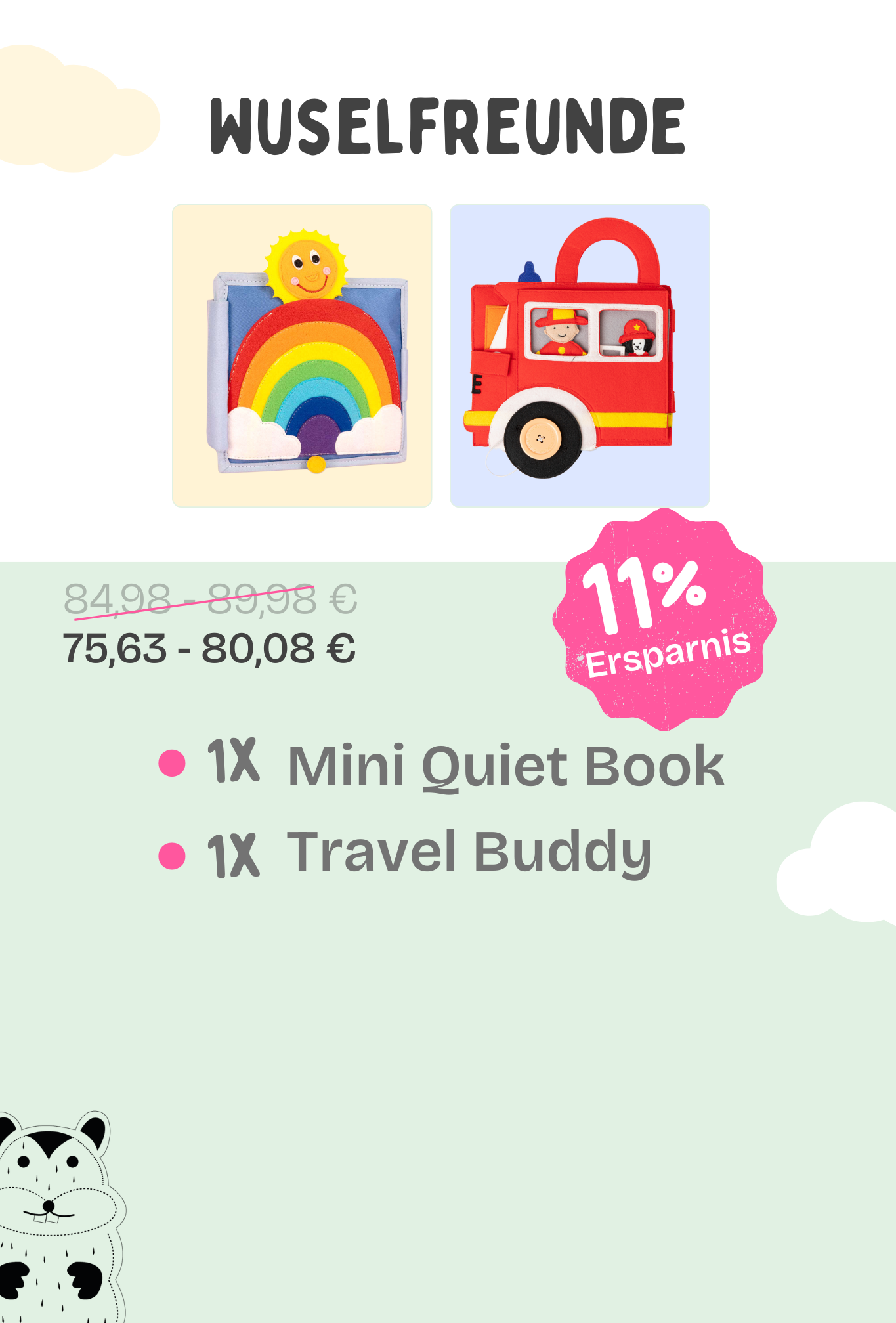 Als eine der ersten Marken für Quiet Books in Europa entwickeln wir pädagogisch wertvolles Stoffspielzeug, das Kinder stärkt und Eltern entlastet. Unsere Produkte fördern Konzentration, Feinmotorik und Selbstständigkeit, ganz ohne Bildschirm, dafür mit Struktur, Ruhe und Freude im Familienalltag.