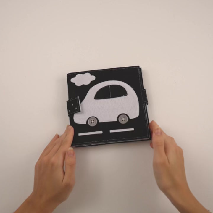 The "Black and White" book by Jolly Designs is perfect for babies from day one. Handcrafted from baby-friendly, OEKO-TEX® certified materials, this book provides safe and valuable playtime tailored specifically to support the visual development of newborns. With its high-quality craftsmanship and thoughtful design, it truly stands out.