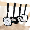 Whether on a stroller, play gym, or crib – thanks to the soft attachment loop, the cards can be quickly and easily secured wherever little eyes are ready to explore. A special highlight: the reflective mirror surface on one of the cards – babies love watching themselves in it.