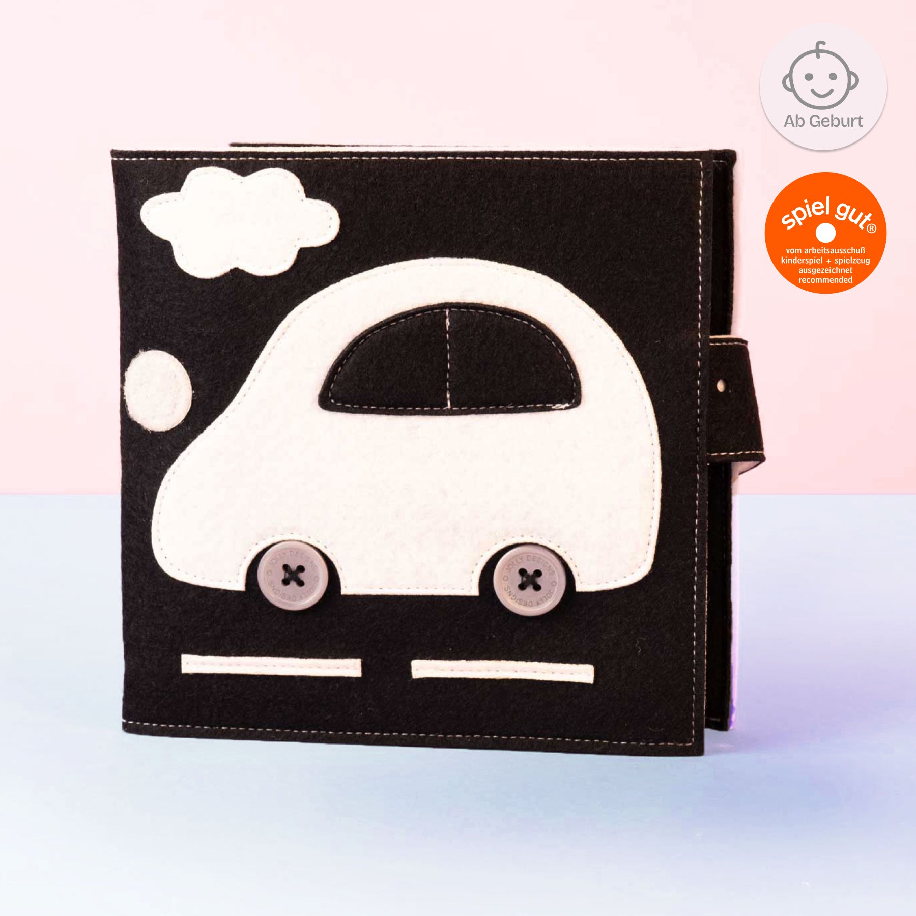 The "Black and White" booklet by Jolly Designs offers babies meaningful activity from the very beginning and playfully supports visual and cognitive development – a valuable toy crafted with love and care!