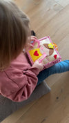 Le prix est dû au fait que chaque livre est fabriqué à la main, pièce par pièce – par exemple, chaque couture, chaque pièce est cousue individuellement. Les livres subissent des contrôles de qualité rigoureux pour garantir qu'ils soient sûrs pour les petites mains. Ils sont intemporels, durables, de haute qualité et résistent à des années de jeu intensif. Leur valeur reste constante. La fabrication des livres est extrêmement longue et complexe.